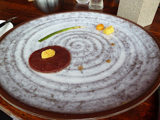 I was surprised at how much smaller in size the restaurant was than I anticipated. We had two menu options, the 4 course meal or the 8 course degustation. We opted for the 4 course meal. The next challenge was to decide which of each dish we wanted for each course. There were some interesting dishes and we wanted to be a little left centre with our choices.