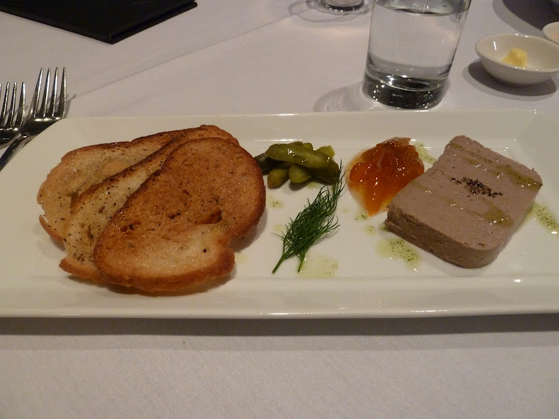 The entrees we chose were Prawn stuffed zucchini flowers with a tomato and red capsicum salsa (one of the daily specials) and Shiraz and eschallot chives liver pâté with cumquat jam and croute with mini gherkins. I so love a good chicken liver pâté, it was creamy and it went well with the slightly tangy cumquat and for some reason I actually enjoyed the gherkins on the pate. I typically do not like gherkins. The zucchini flowers were absolutely delicious! I could have had the whole plate.